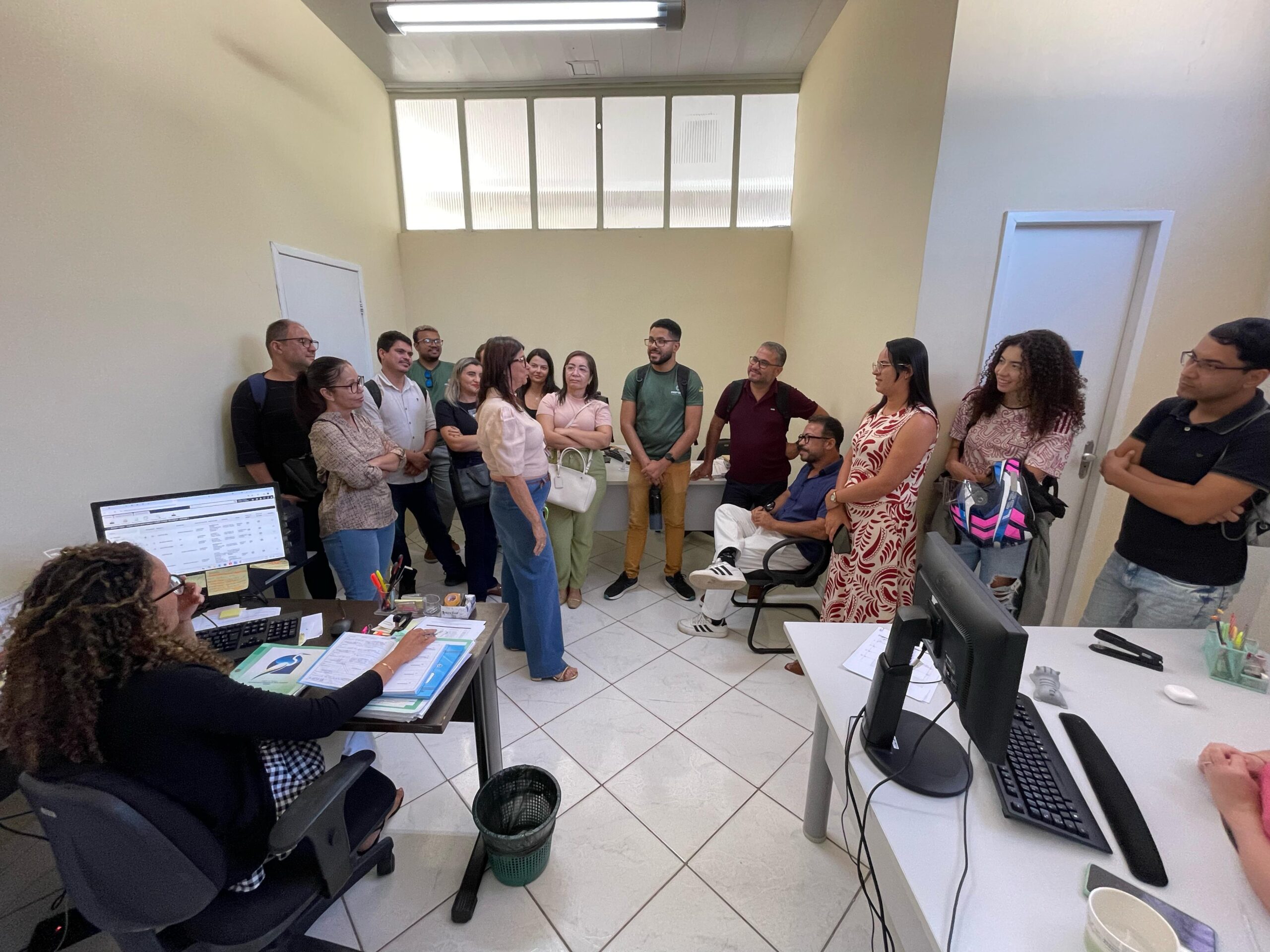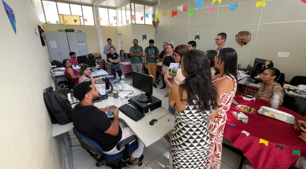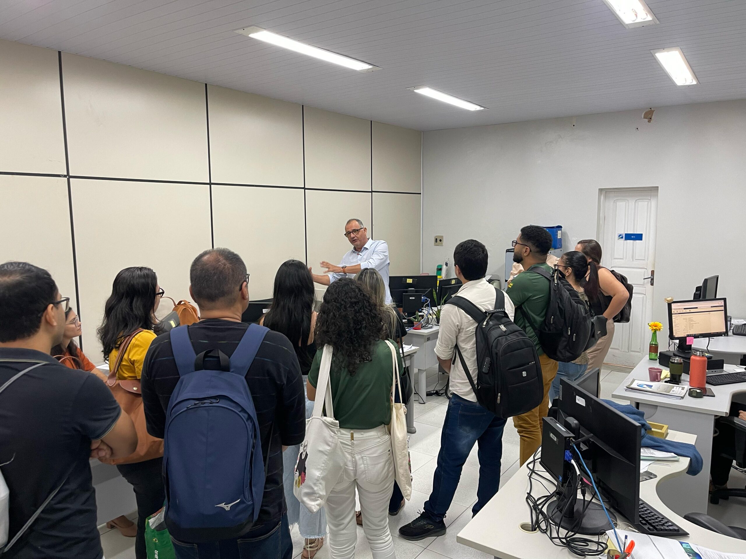Em seguida, os alunos visitaram todos os setores da Adema, inclusive os responsáveis pelo licenciamento e fiscalização, tirando dúvidas e compreendendo mais sobre os processos internos, que vão desde o atendimento ao público até o trabalho em campo com a fiscalização e vistorias, além da emissão de autos.