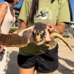 Tamar e Adema realizam retorno ao mar de tartaruga reabilitada